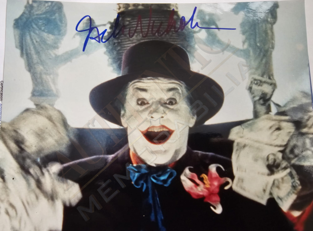 A colour movie still depicting Jack Nicholson as the Joker seated before the throne, hand-signed by Jack Nicholson and authenticated by a UACC-recognised member